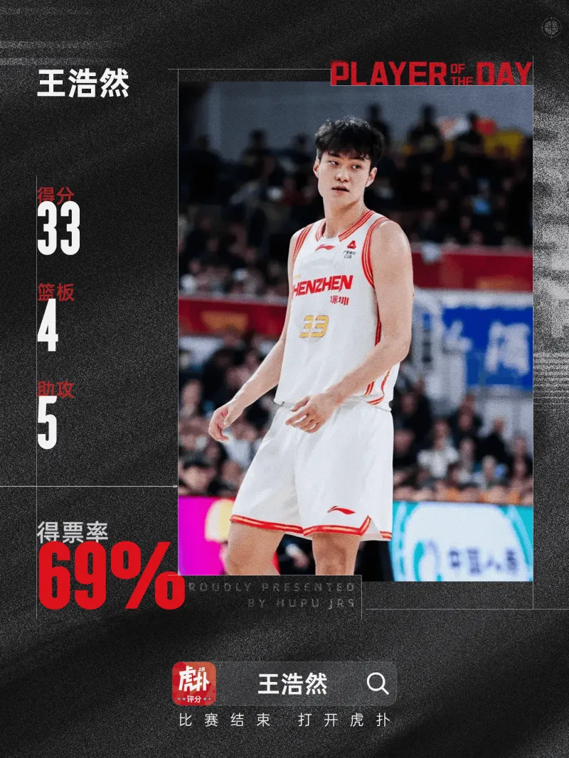 [JRs评选]王浩然当选CBA常规赛第36轮本土MVP