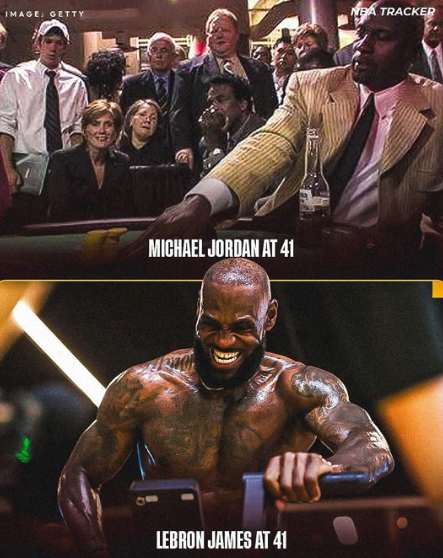 [流言板]美媒调侃:41岁的乔丹在赌场,41岁的詹姆斯还在征战季后赛